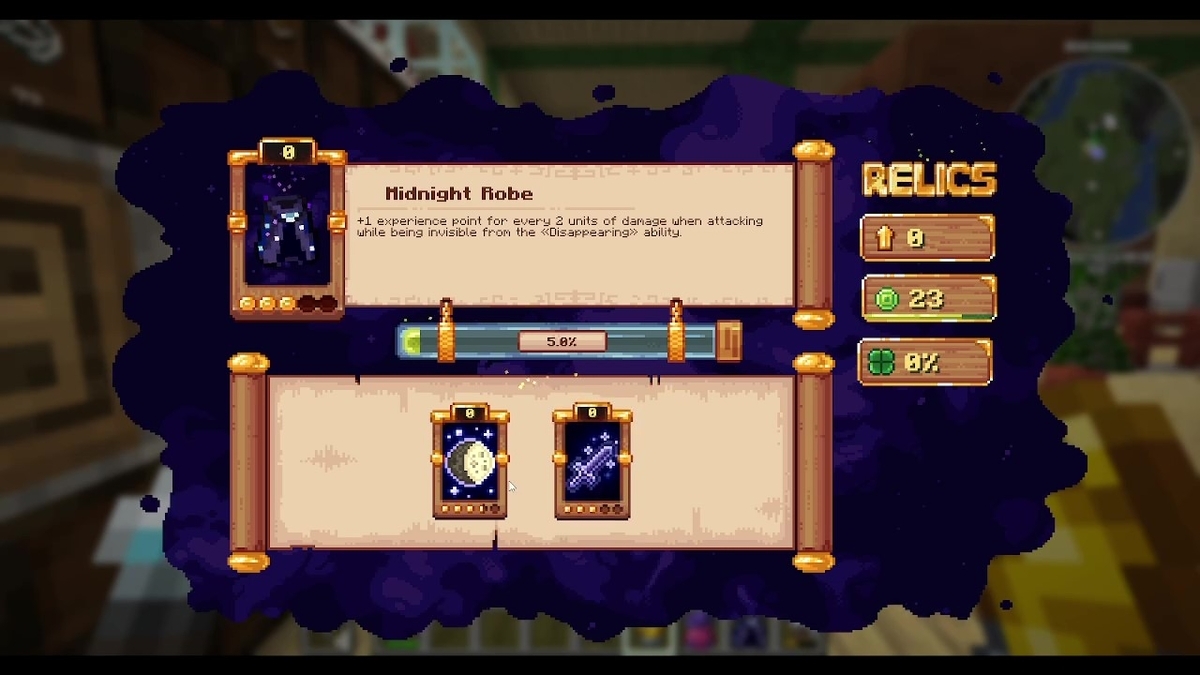 一定値より暗い場所にいると装備含めて完全に透明になり、移動速度が上昇するアーティファクトです。バックパックと同じ場所に装備することになるのがちょっと不便ですが、強力なので採用しましょう。