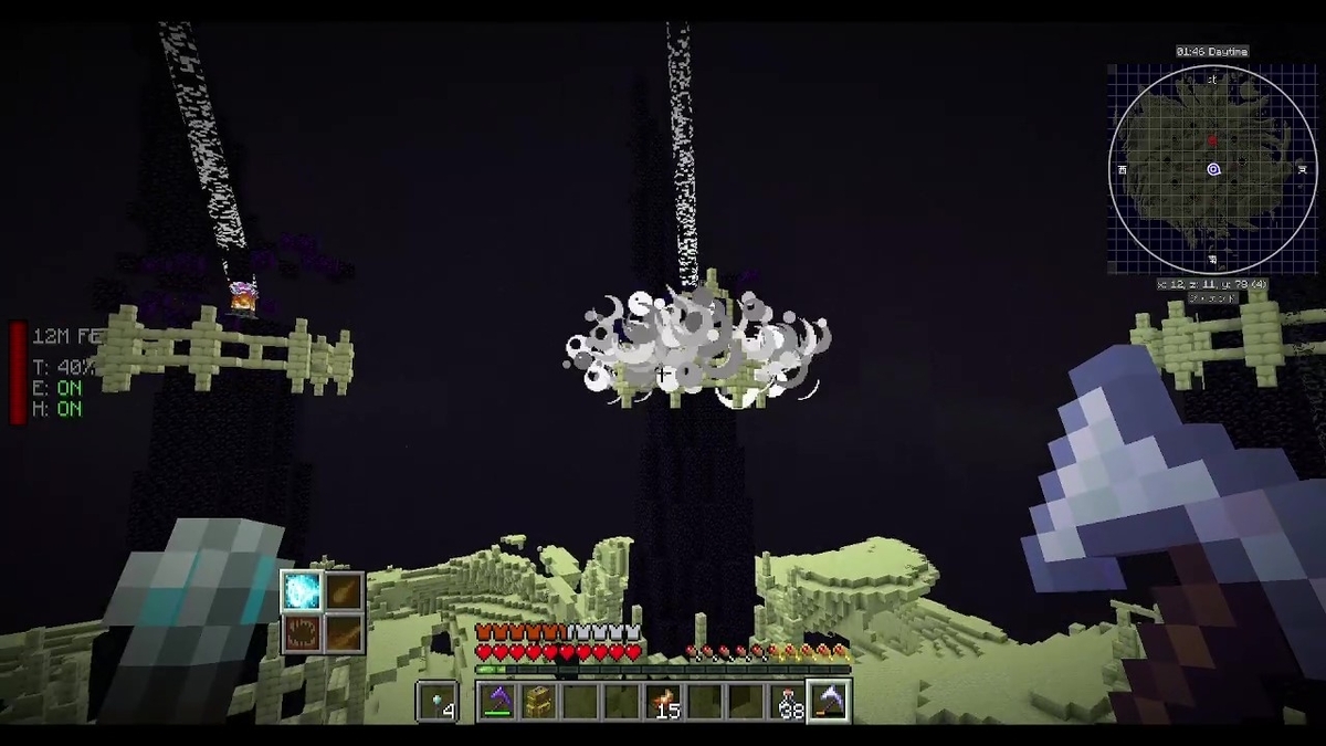 いつも通りクリスタルを破壊します。飛べると楽ちん過ぎる。Apotheosisのためにエンドラブレスを採取したいのでビンをもって待っていましたが、全然ブレスを吐いてくれません。